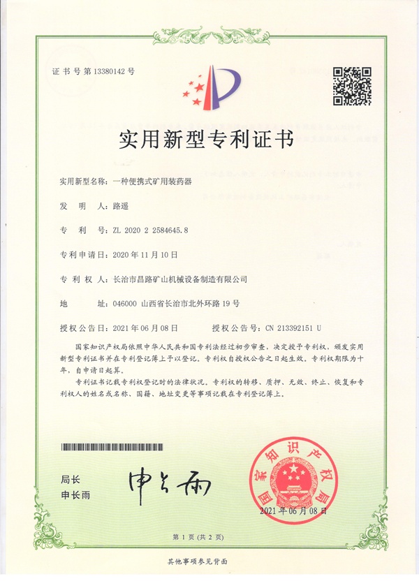 1、我公司為專業(yè)裝藥器制造廠家,公司產(chǎn)品獲得國家專利。